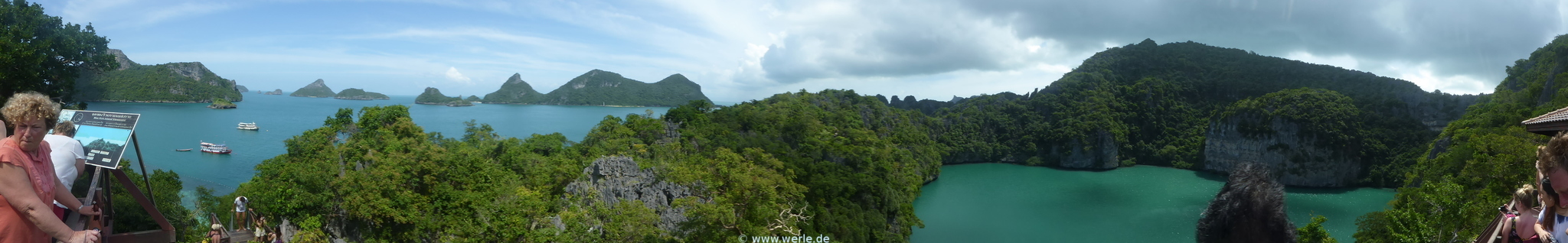 180° Panorama Foto vom Viewpoint auf Koh Mae Ko, rechts die "Emerald Lagoon"